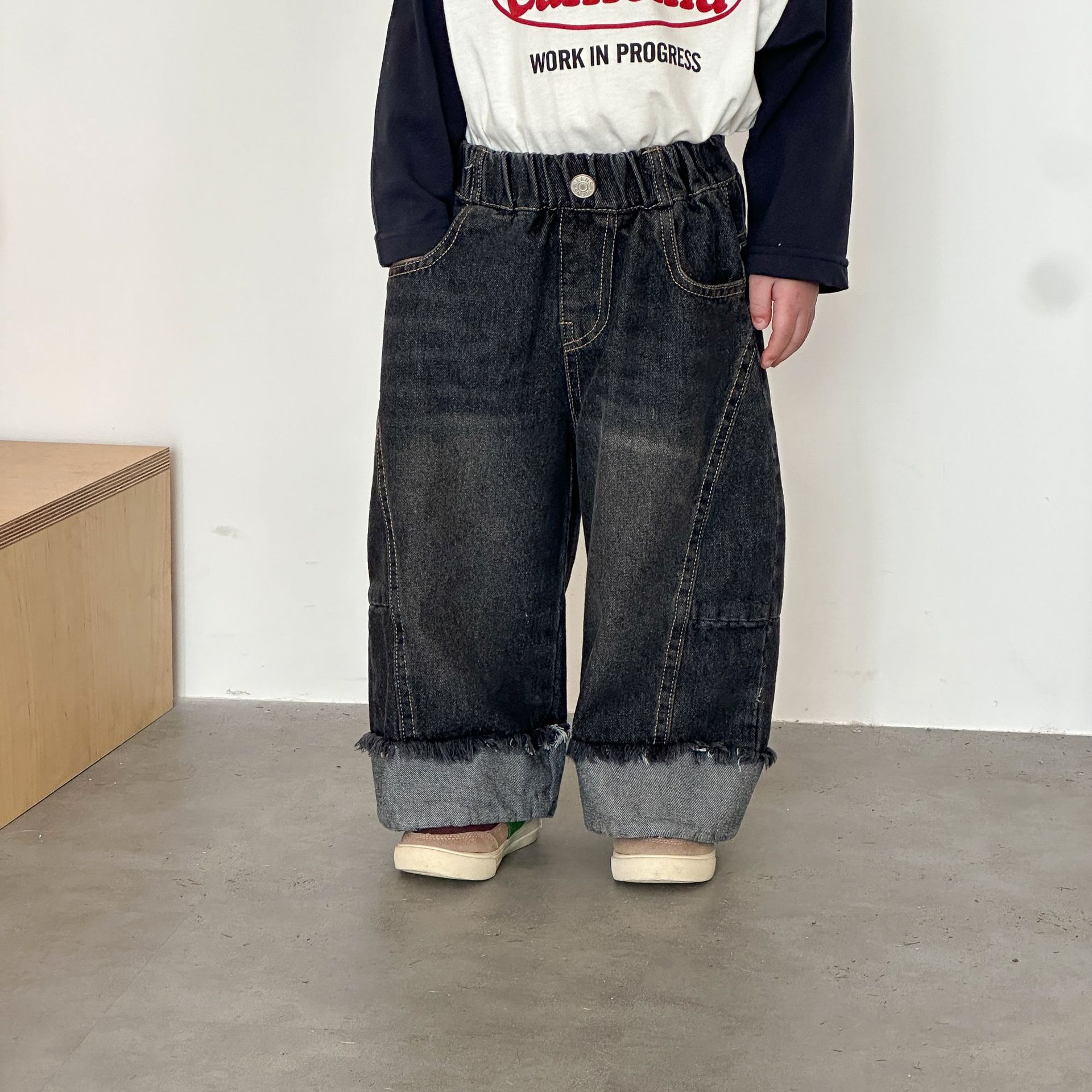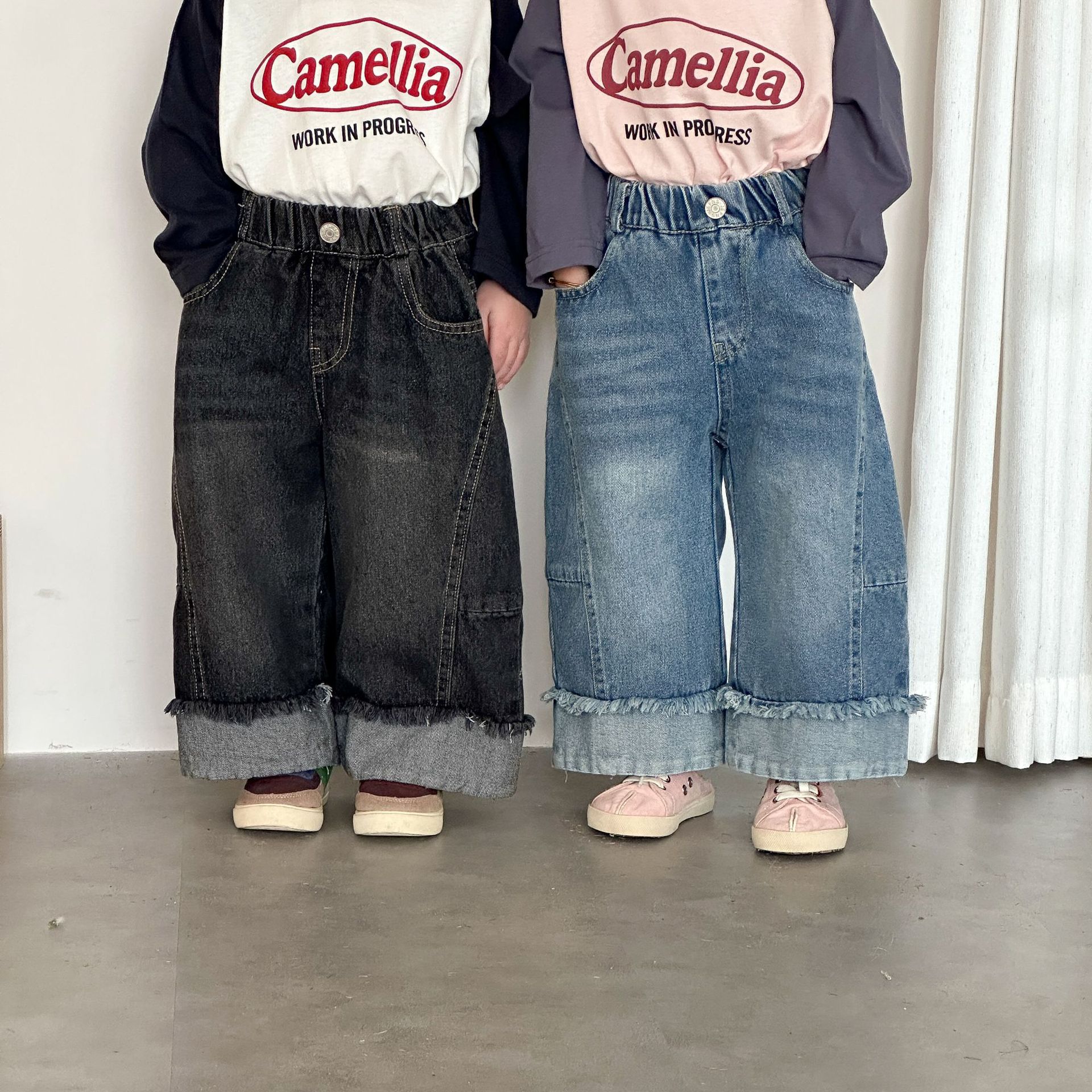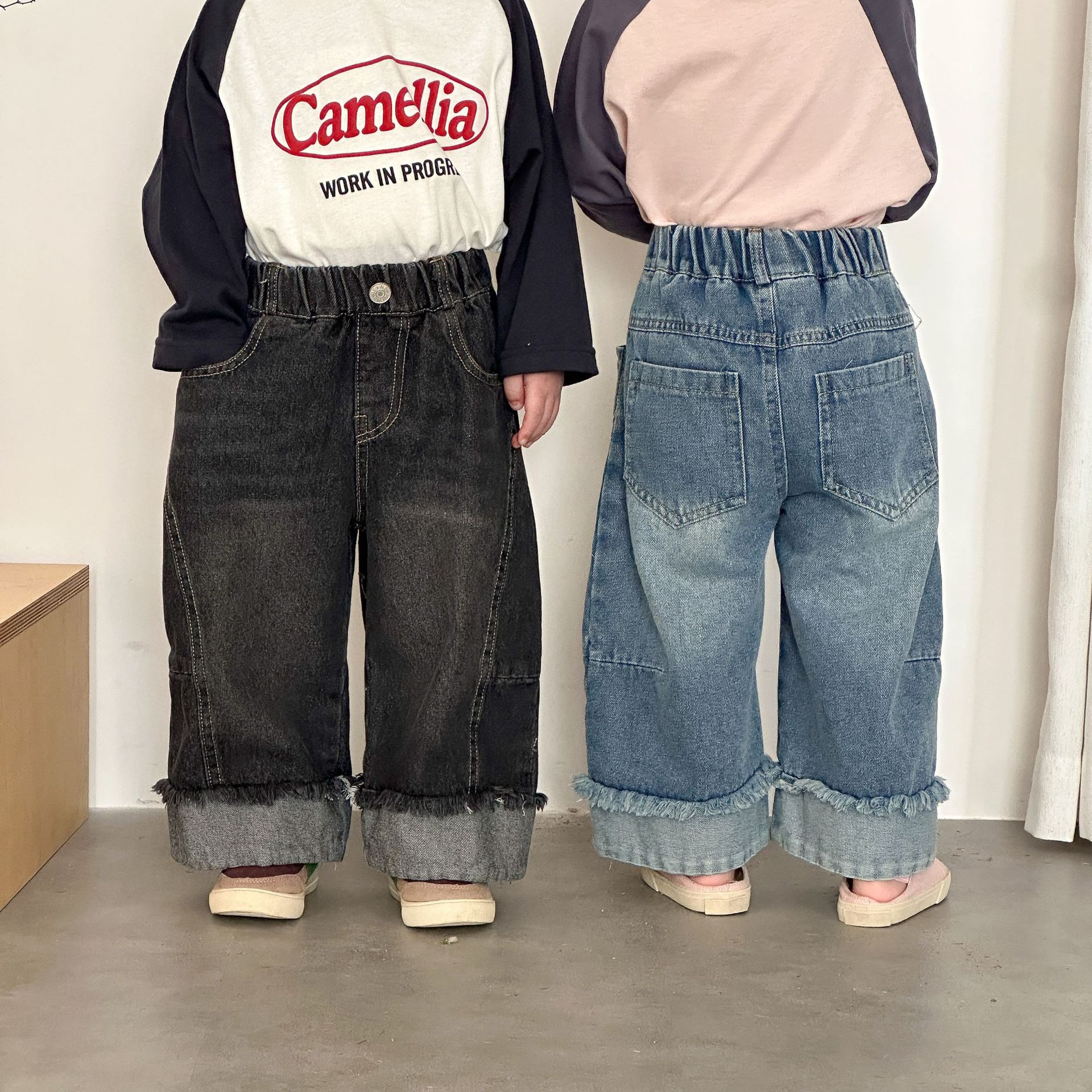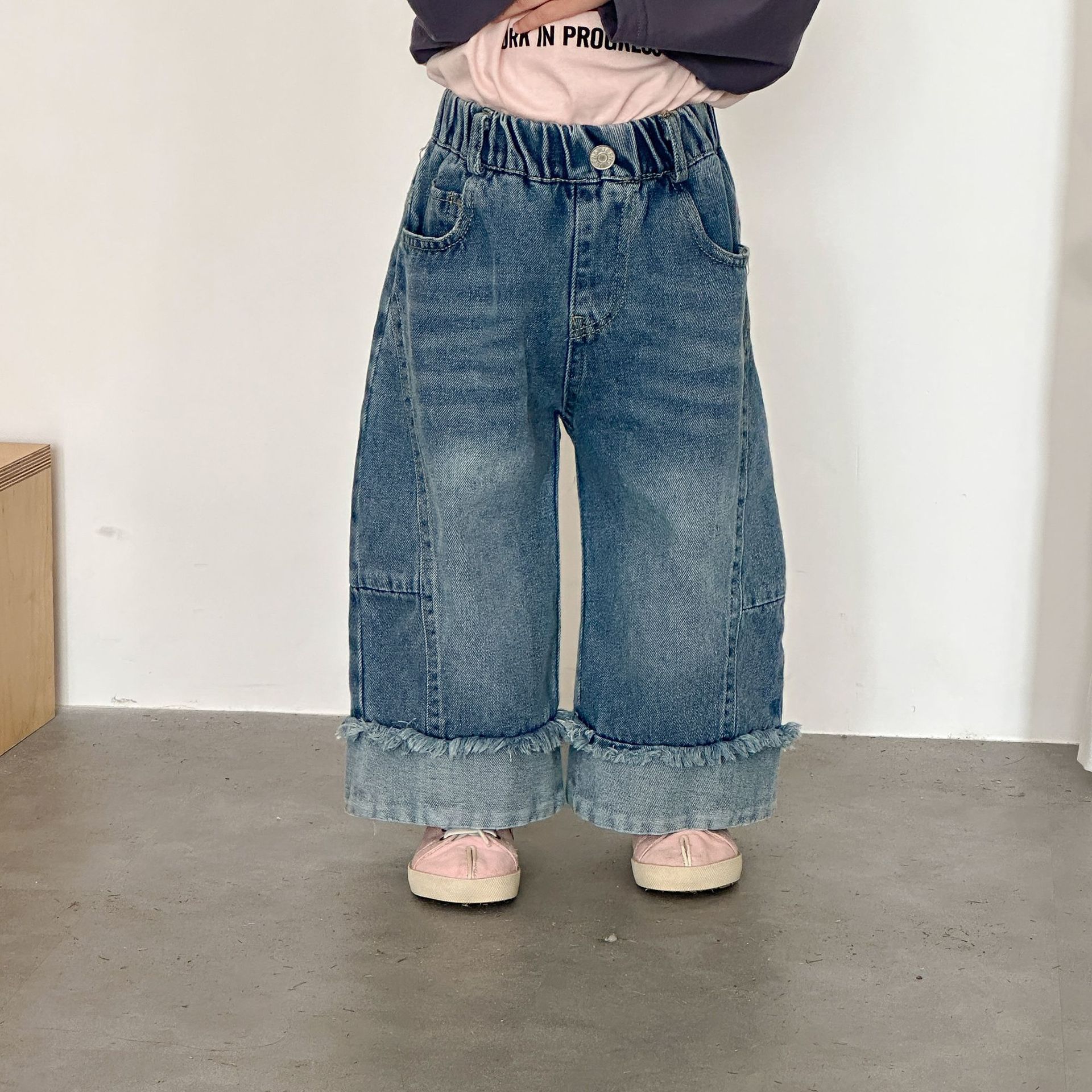 推 ♡ 韓系拼接抽鬚寬牛仔褲