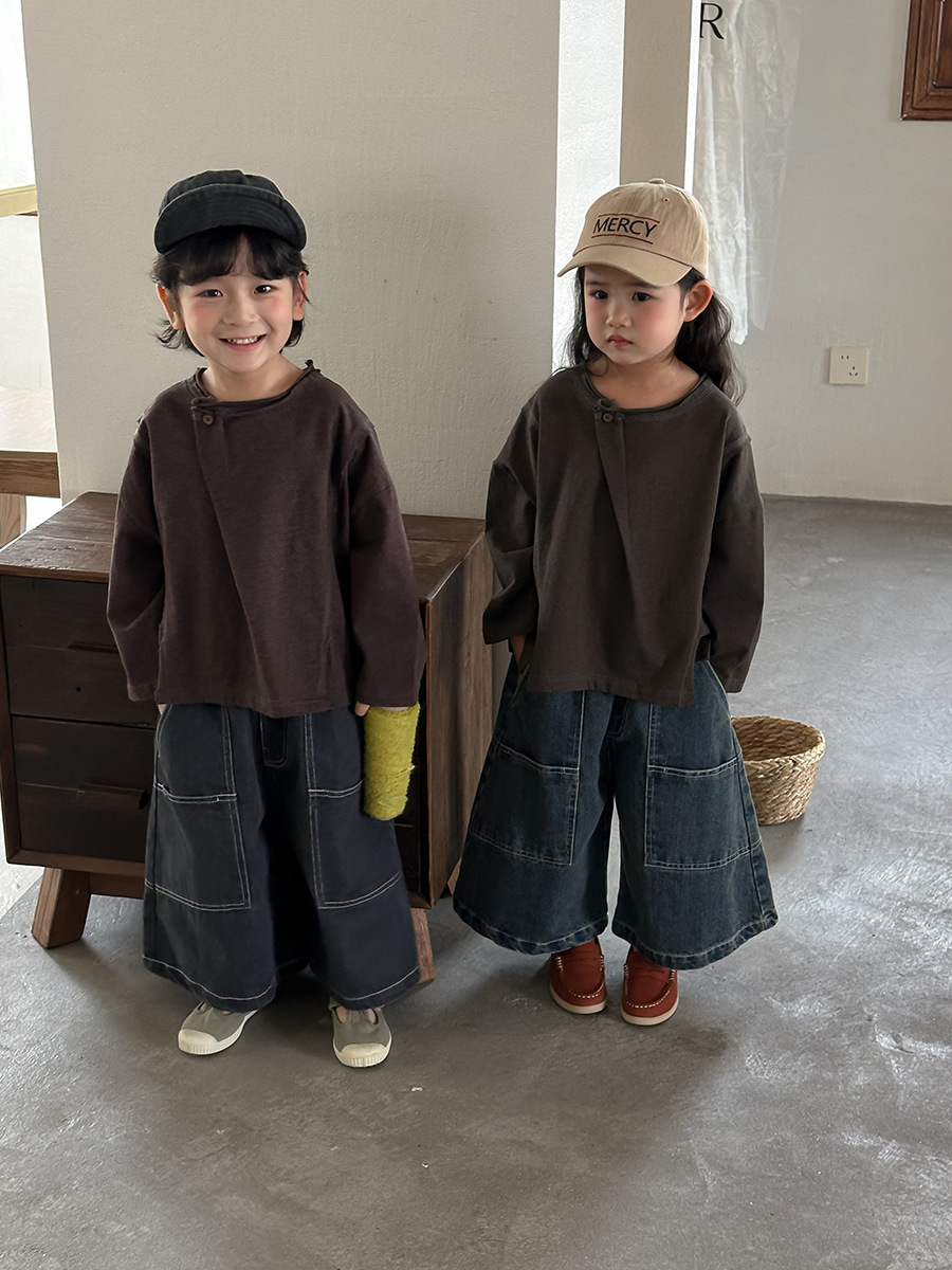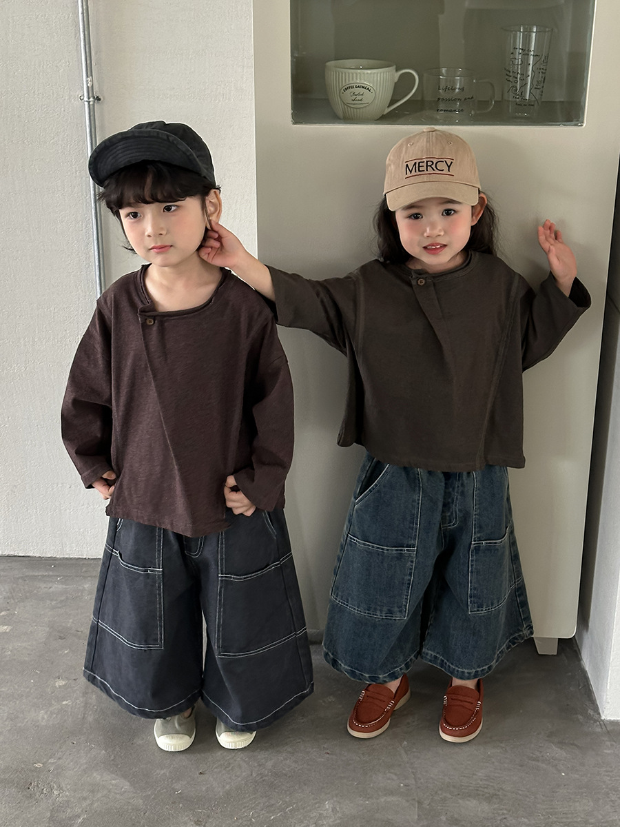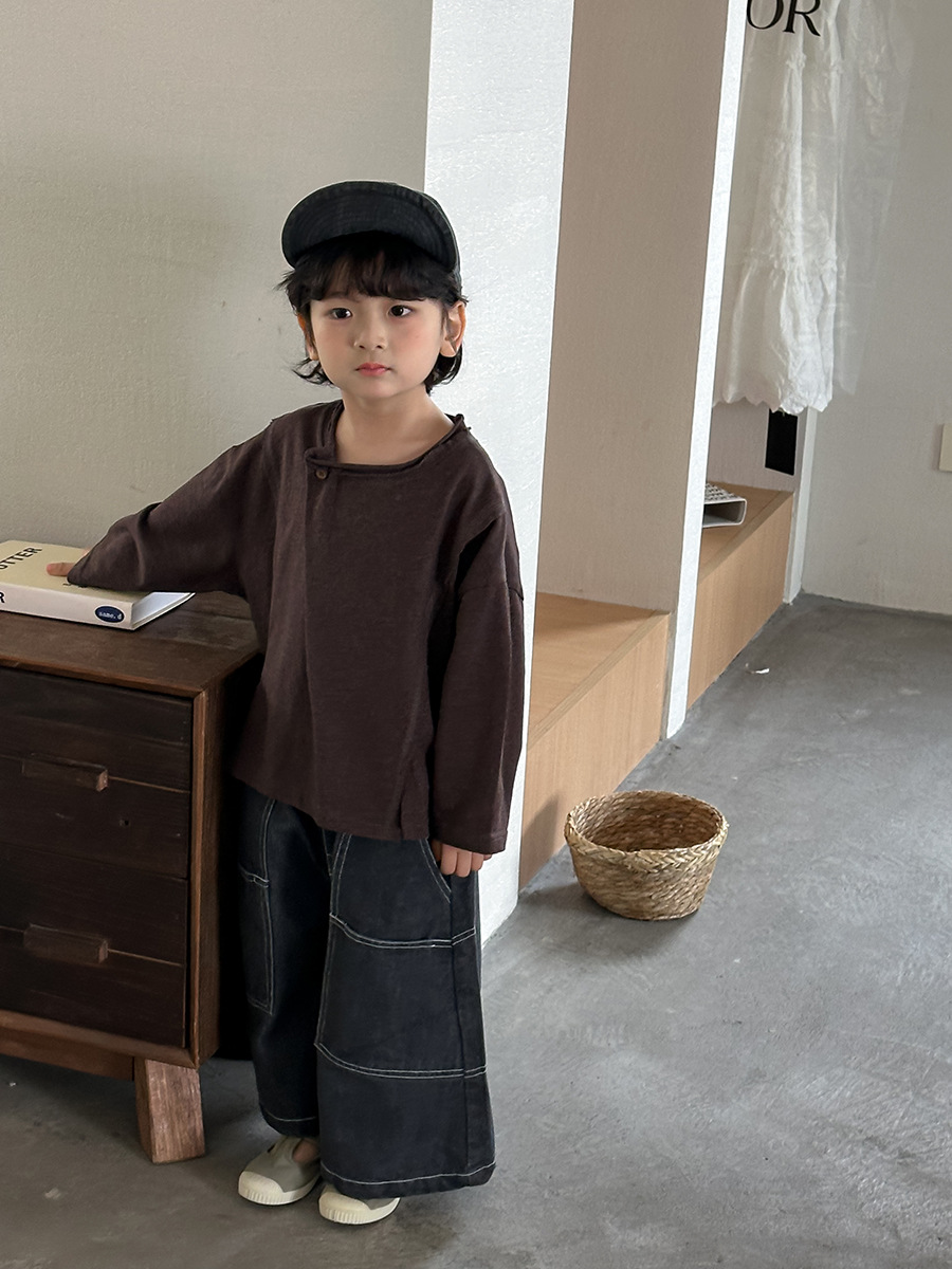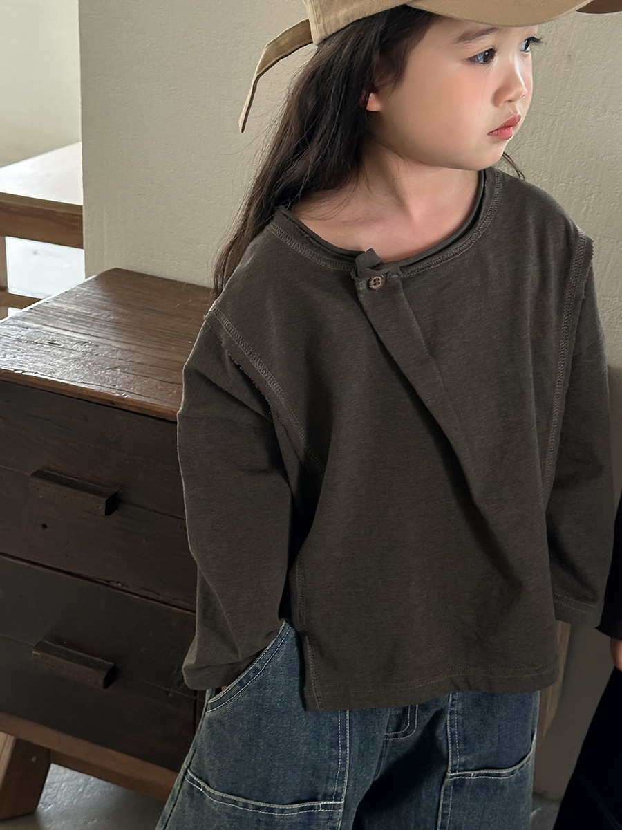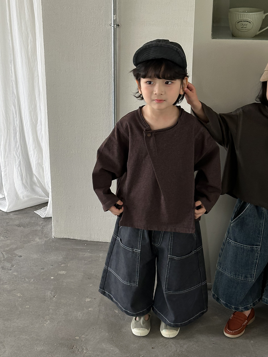 韓系特色斜拼釦上衣