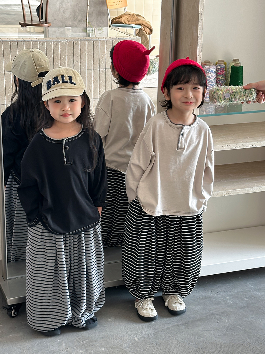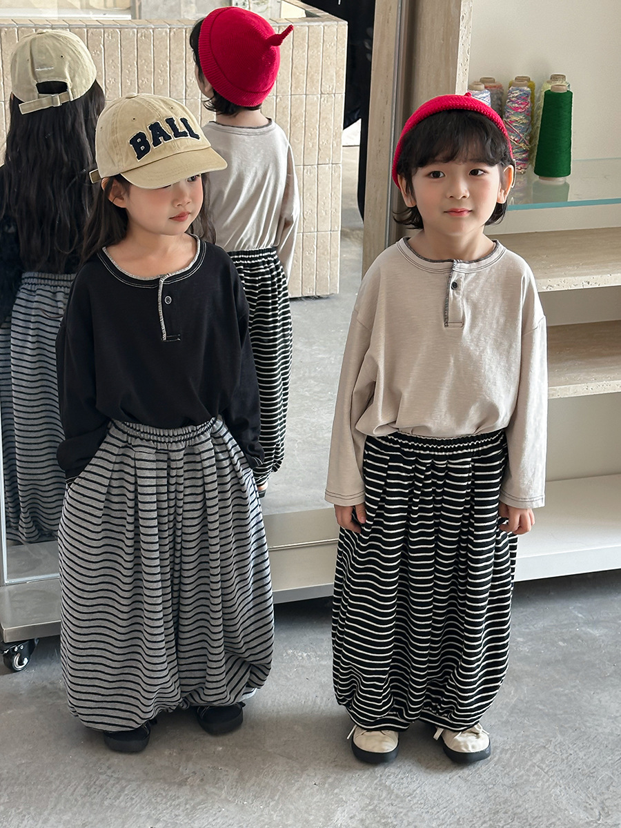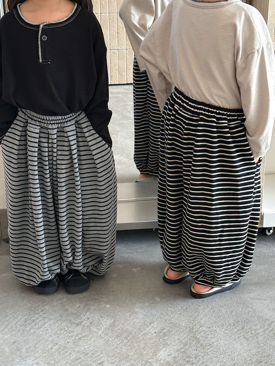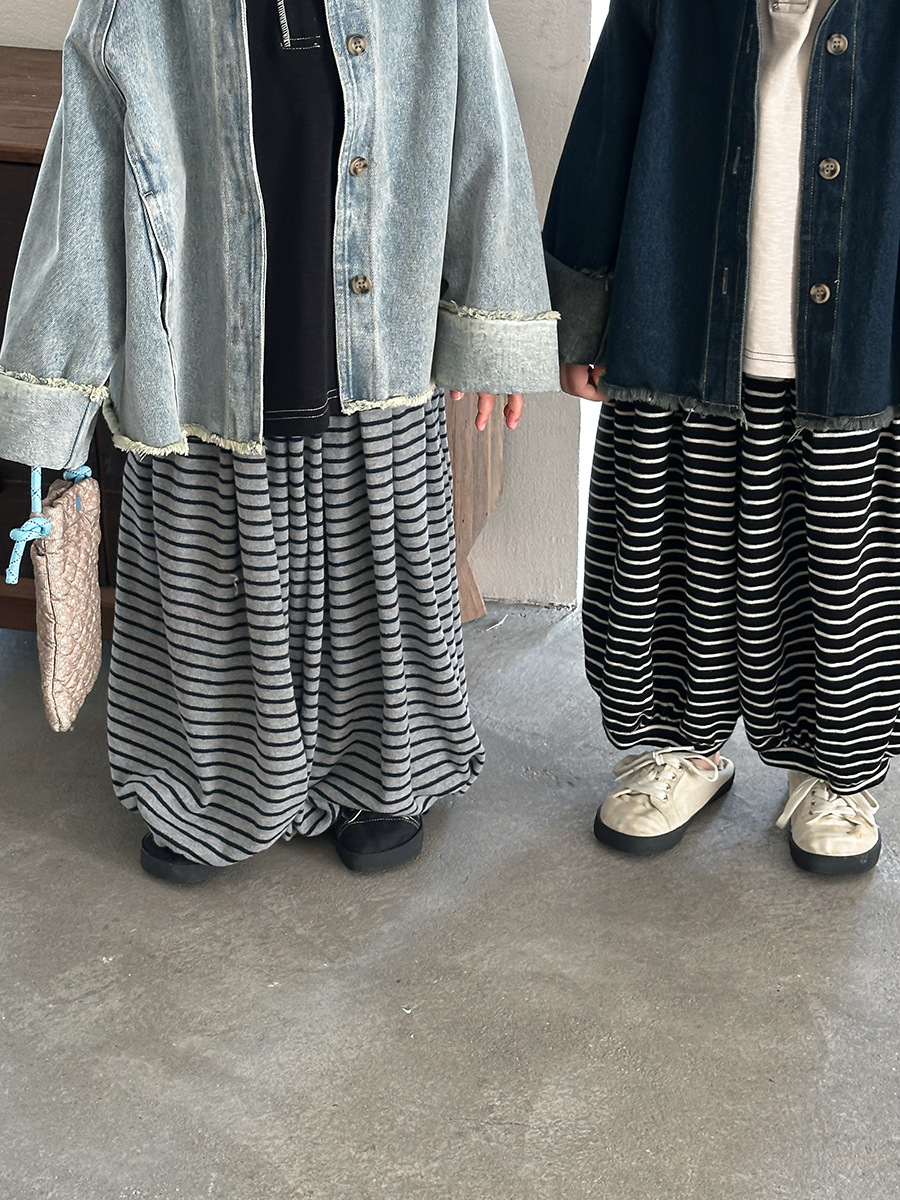 日系條紋蘿蔔寬褲