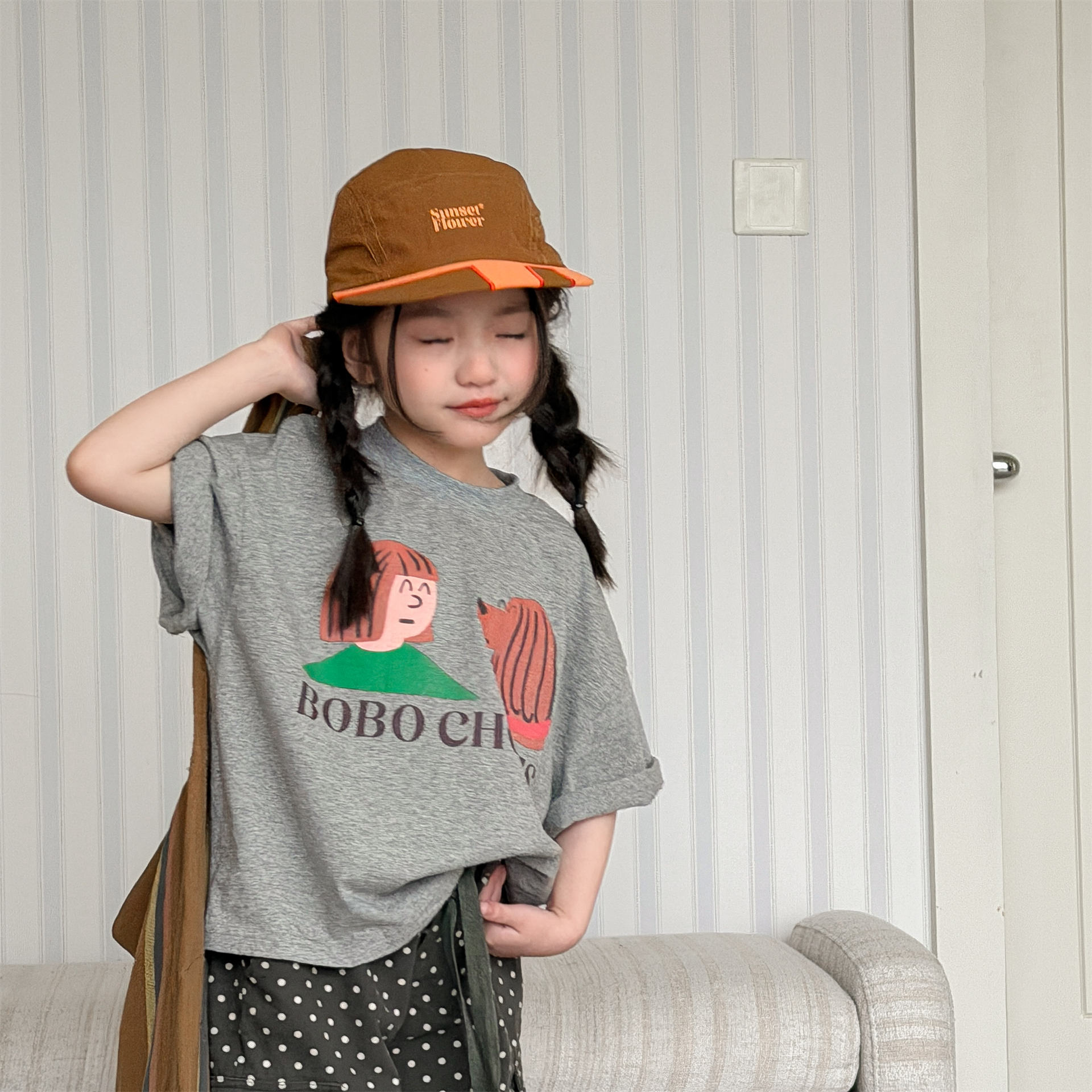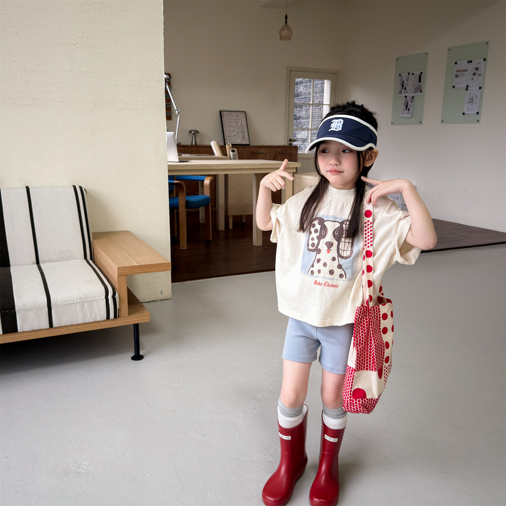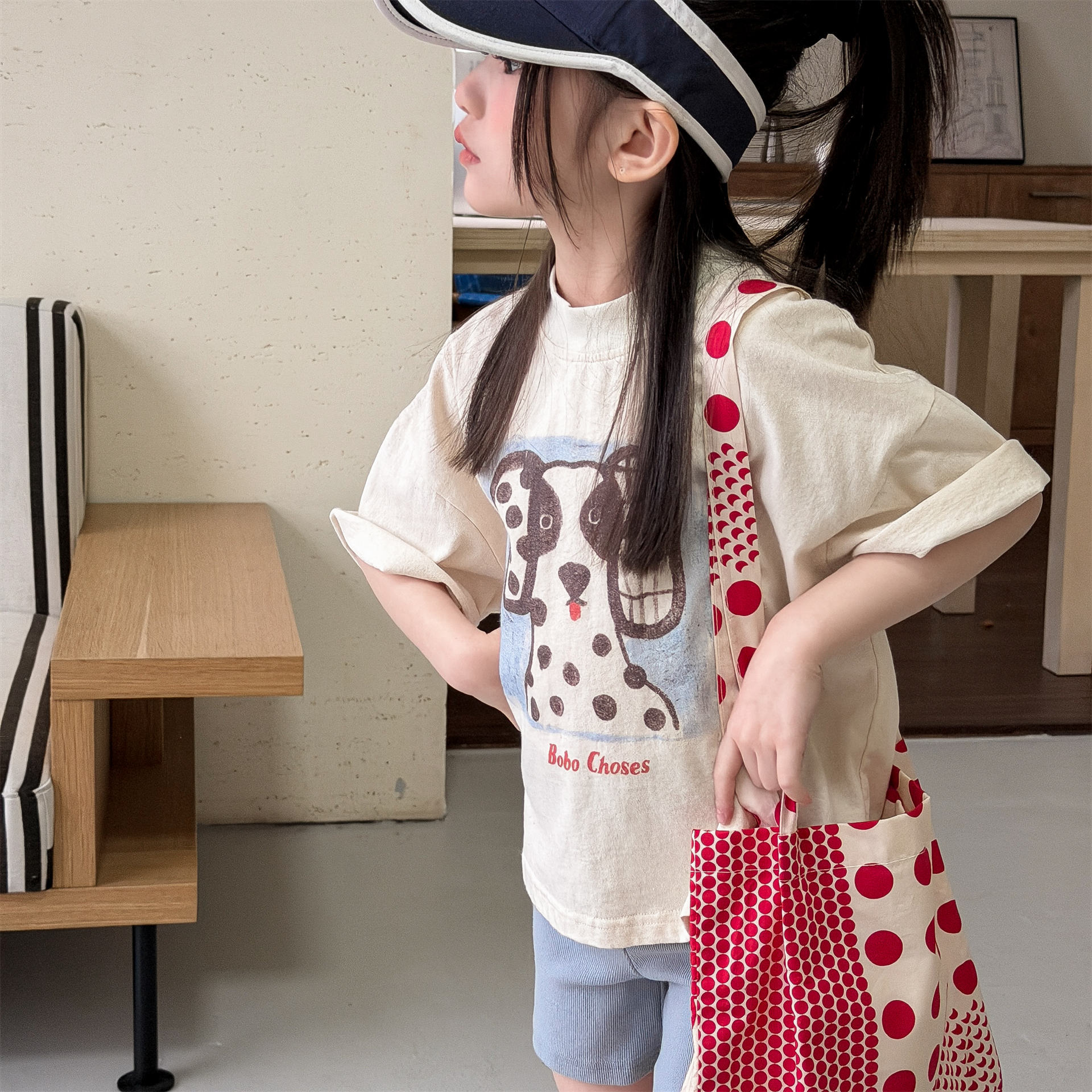 韓系薄款圓點補丁T